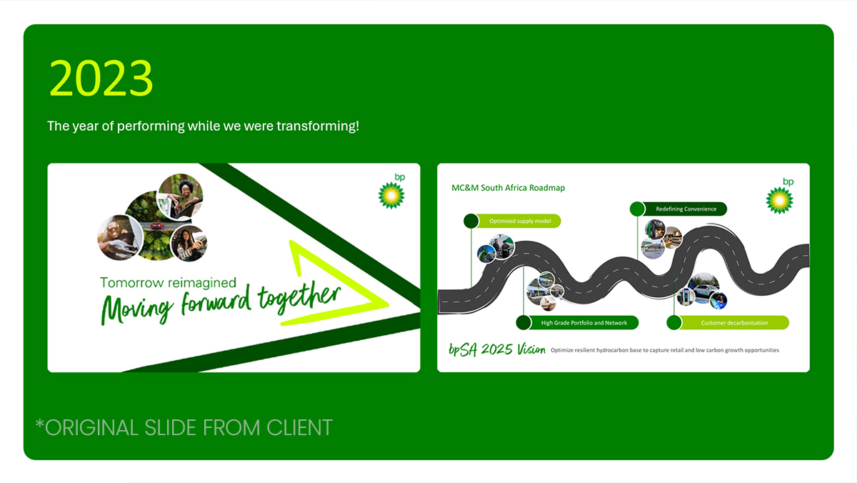 A Static PowerPoint presentation was shared by the client and the task was to make some slides more dynamic. Separate video files were exported and embedded in the presentation file.